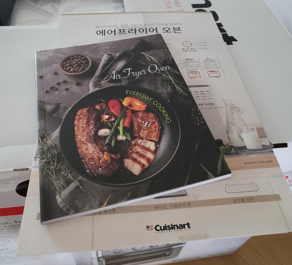 번역도 좋은 편이고 추가로 우리말로 된 요리책도 딸려 왔어요. 내가 이거 다 해먹을 리는 없고 아마도 에어프라이어 기능에 토스터 쓰는 것으로 주 기능을 다 할 거라는 강력한 의심이... ^^;